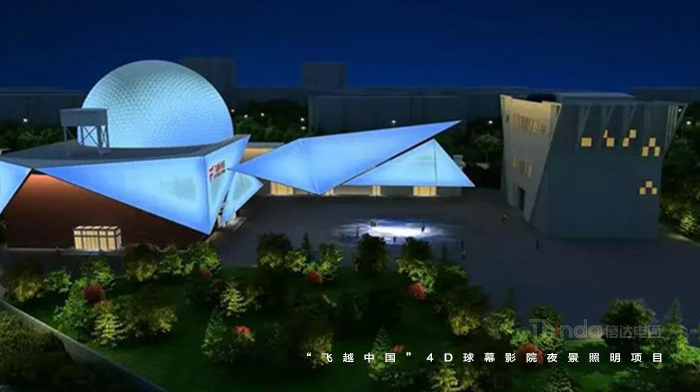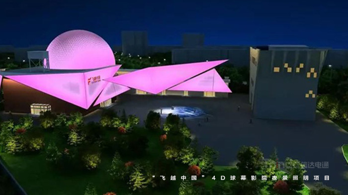 在光色的設計中,信達電通采用皓白、暖黃、科技藍等多種顏色漸變切換的設計手法。燈光重點勾繪外圍建筑輪廓,突出建筑的獨特結構,與球幕影院和廣場地面的投影形成互補和諧的夜景畫面。