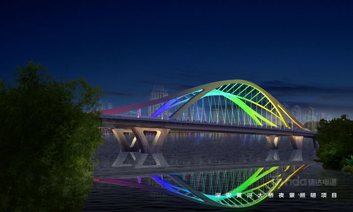 深安黃河大橋夜景照明設計屬于大型橋梁夜景亮化項目,信達電通綜合深安黃河大橋的結構和位置進行設計,并在亮化設計中實現節日模式、平日模式、深夜模式的智能切換,實現大橋夜間照明與景觀的雙重效果實現,形成跨黃河的立交景觀橋。