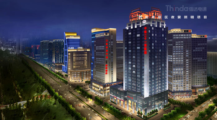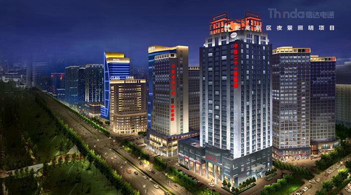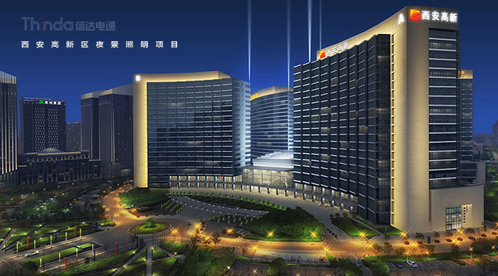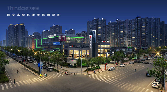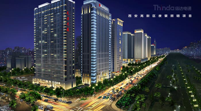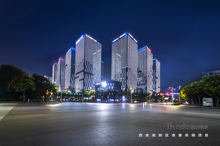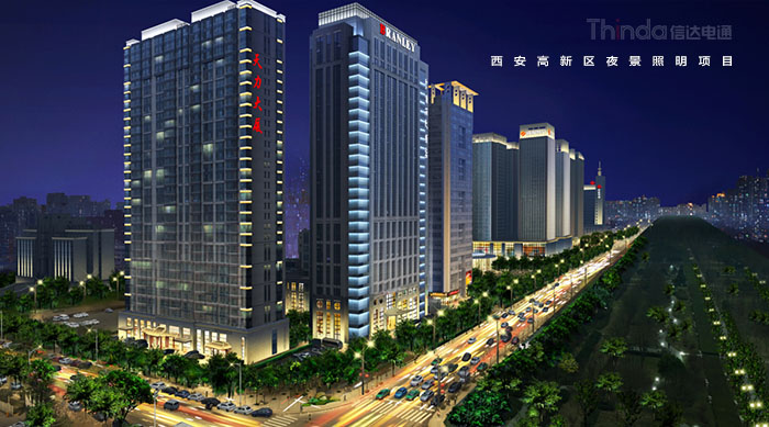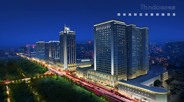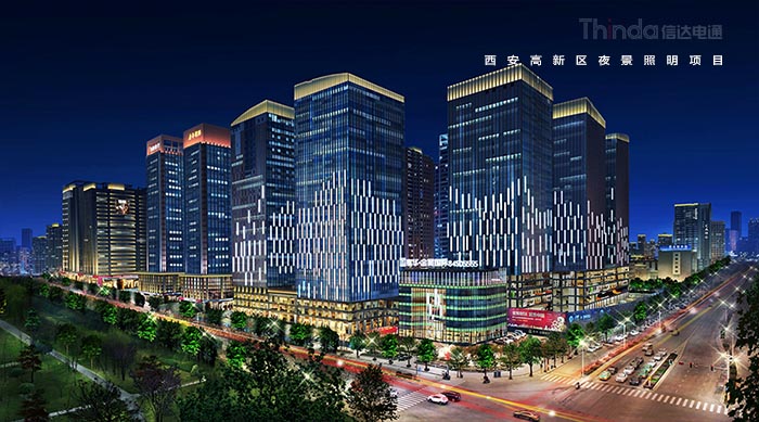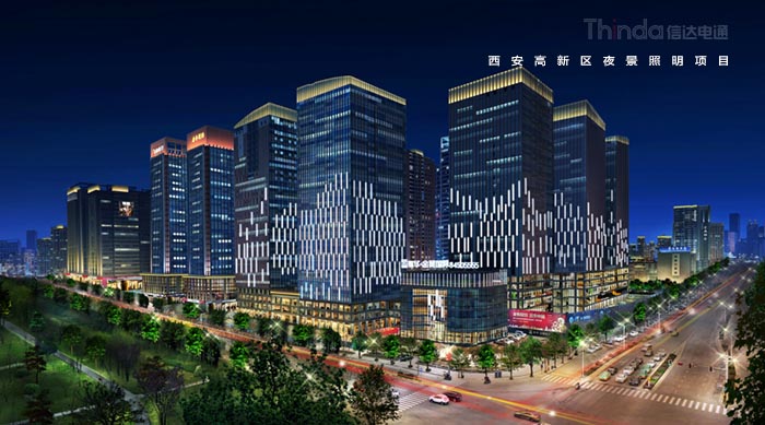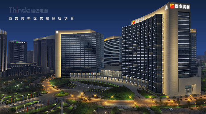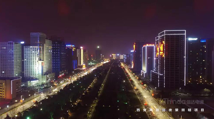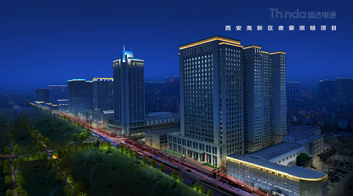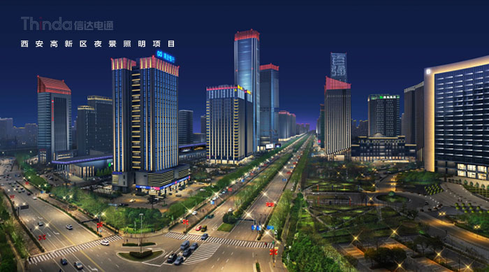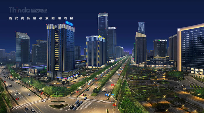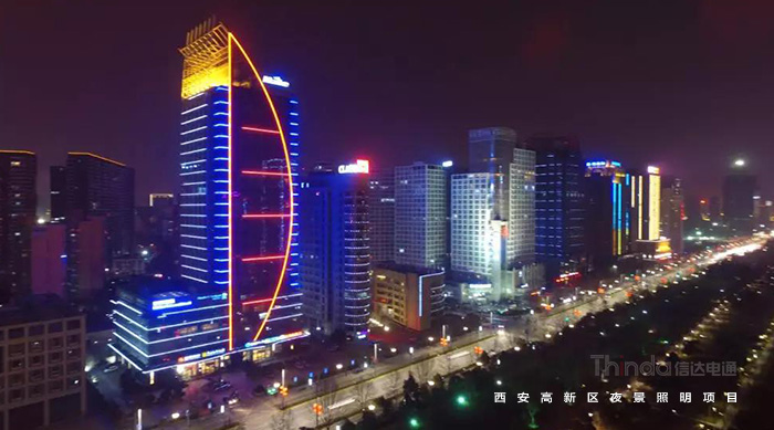 1991年3月西安高新區被國務院首批批準為國家級高新區,如今,西安高新區已成為一個代表西安與西部高新科技產業前沿的領地。2016年,西安高新區整體提升夜景照明,信達電通對高新區灃惠南路、唐延路和錦業路三條主干道及輻射的周邊建筑進行亮化升級改造,區域全長6.4KM。