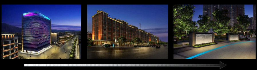 一級建筑照明:以鎮區范圍內商業建筑、公共服務類建筑以及企業辦公樓建筑定義為第一照明等級。