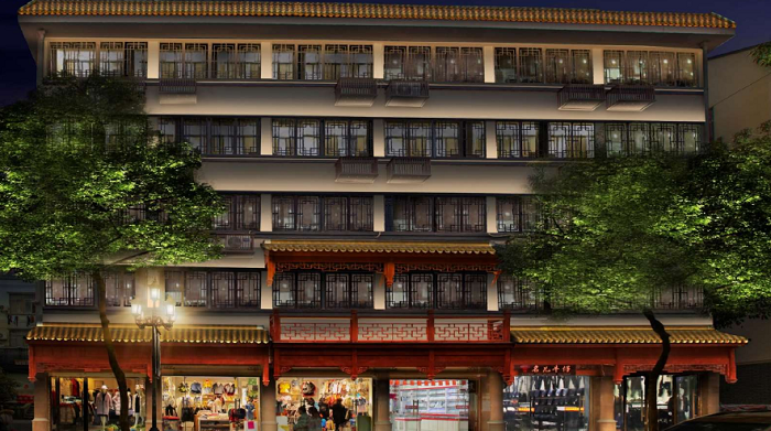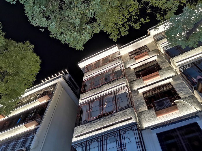 三級建筑照明:以沿街道路低矮居住類建筑為主,定義為三級照明等級,主要表現建筑頂部及立面重要結構光。